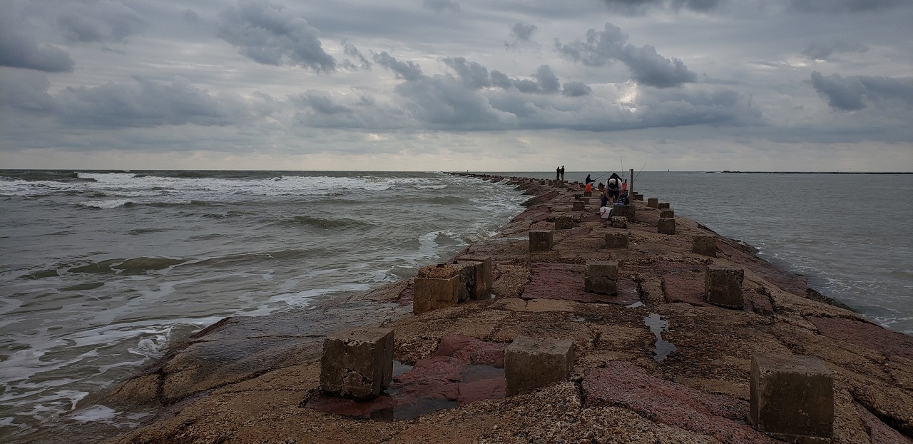 이틀동안 사우스 파드레 아일랜드와 다음날 포트 애런사스 사우스 제티에서 낚시를 하였지만 잡어 입질만 받고 손맛을 보지 못한터라 다음날은 와이프한테 미안하지만 노스 제티로 들어 가기로 계획을 잡았습니다. 오전만 하고 철수할 생각으로 다음날 일찍 일어나 피셔맨 주차장에 주차를 하고 바로 7시 배에 탑승을 하였습니다.