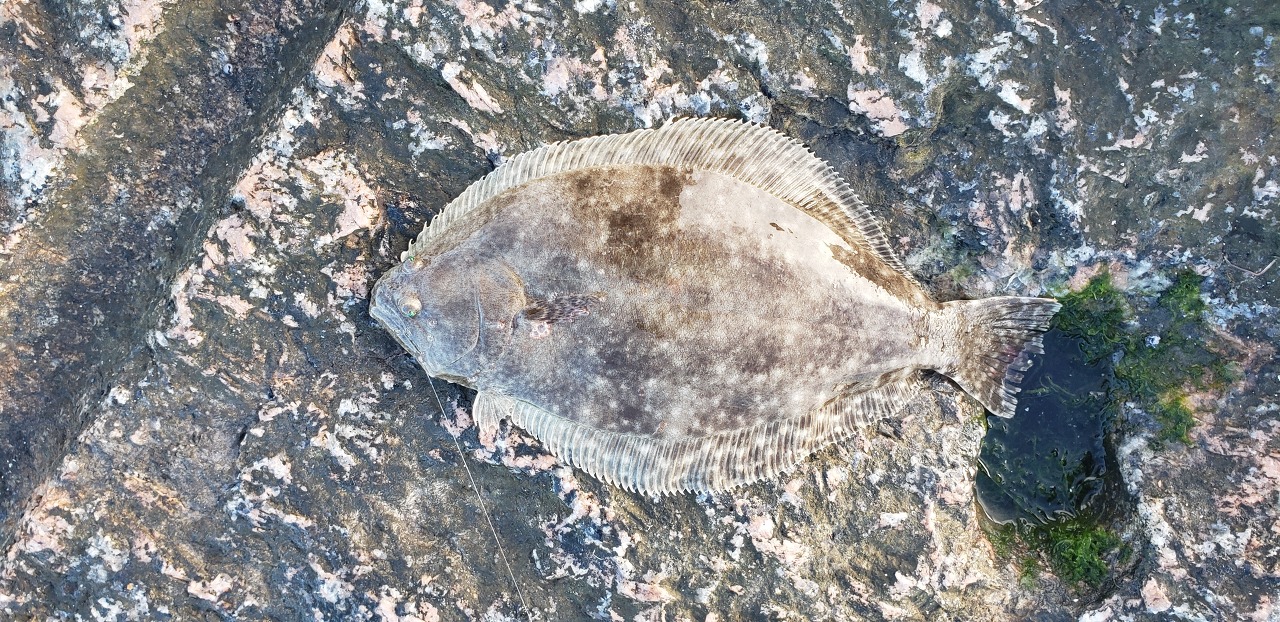 그러던 와중에 이상한 입질이 감지 되면서 릴링을 합니다. 올려보니 웬~~ 납작한 것이 바늘에 걸려 올라옵니다.