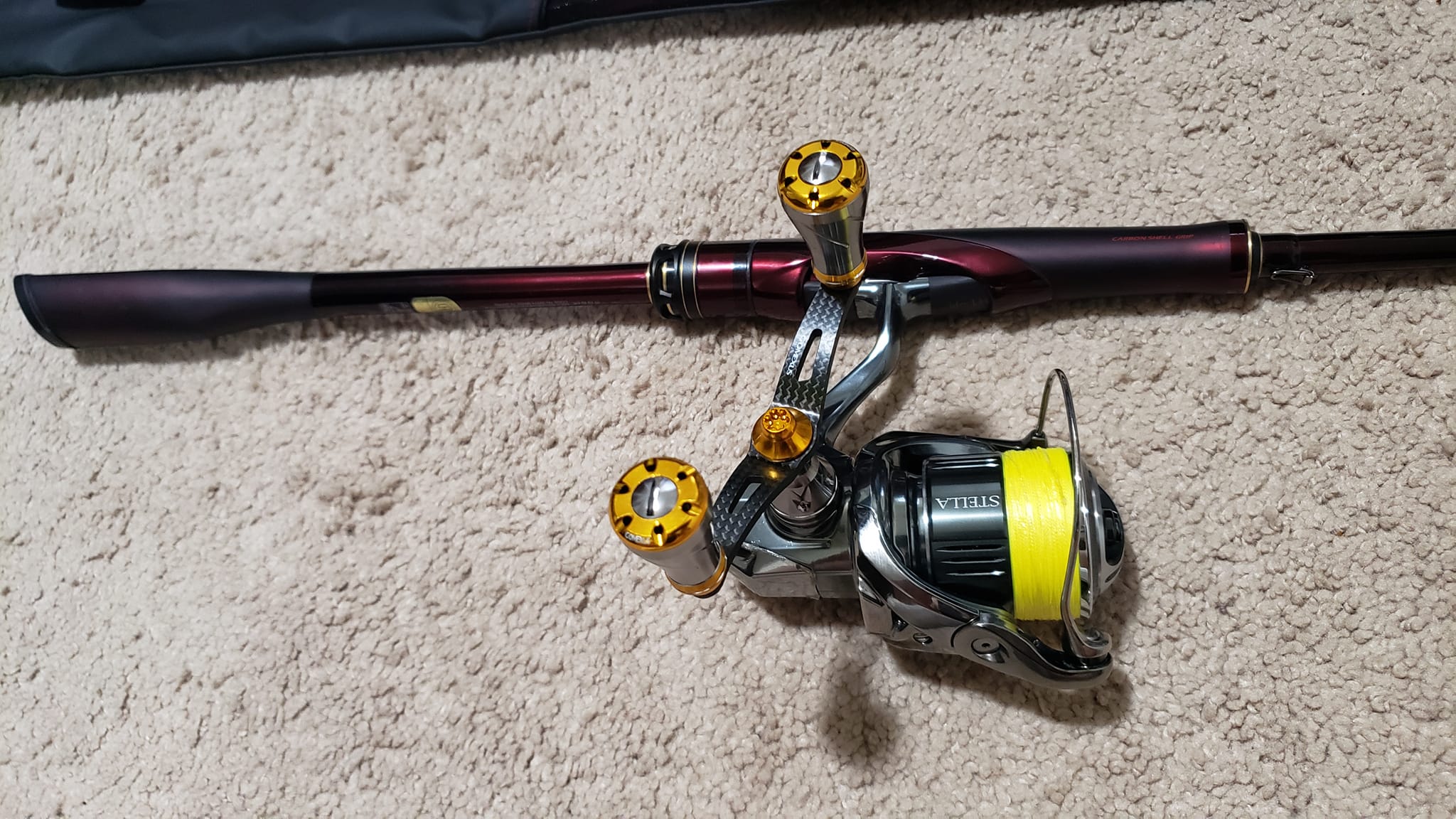 시마노대이니 시마노 릴을 결착하니 커피색 루어대에 메탈색상의 릴이.. 궁합이 잘 맞는것 같습니다.